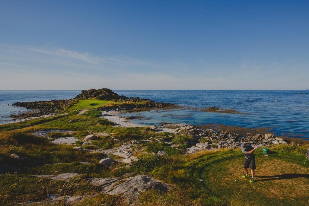 Men Robert, Lofoten Links manager, beskrev banan väldigt bra tycker vi… “Var inte rädda för det där gröna i mitten. Det är fairway. Håll er där! Vi har lagt allt vårt fokus på greener, fairway och tee så är ni utanför så blir det svårt!”